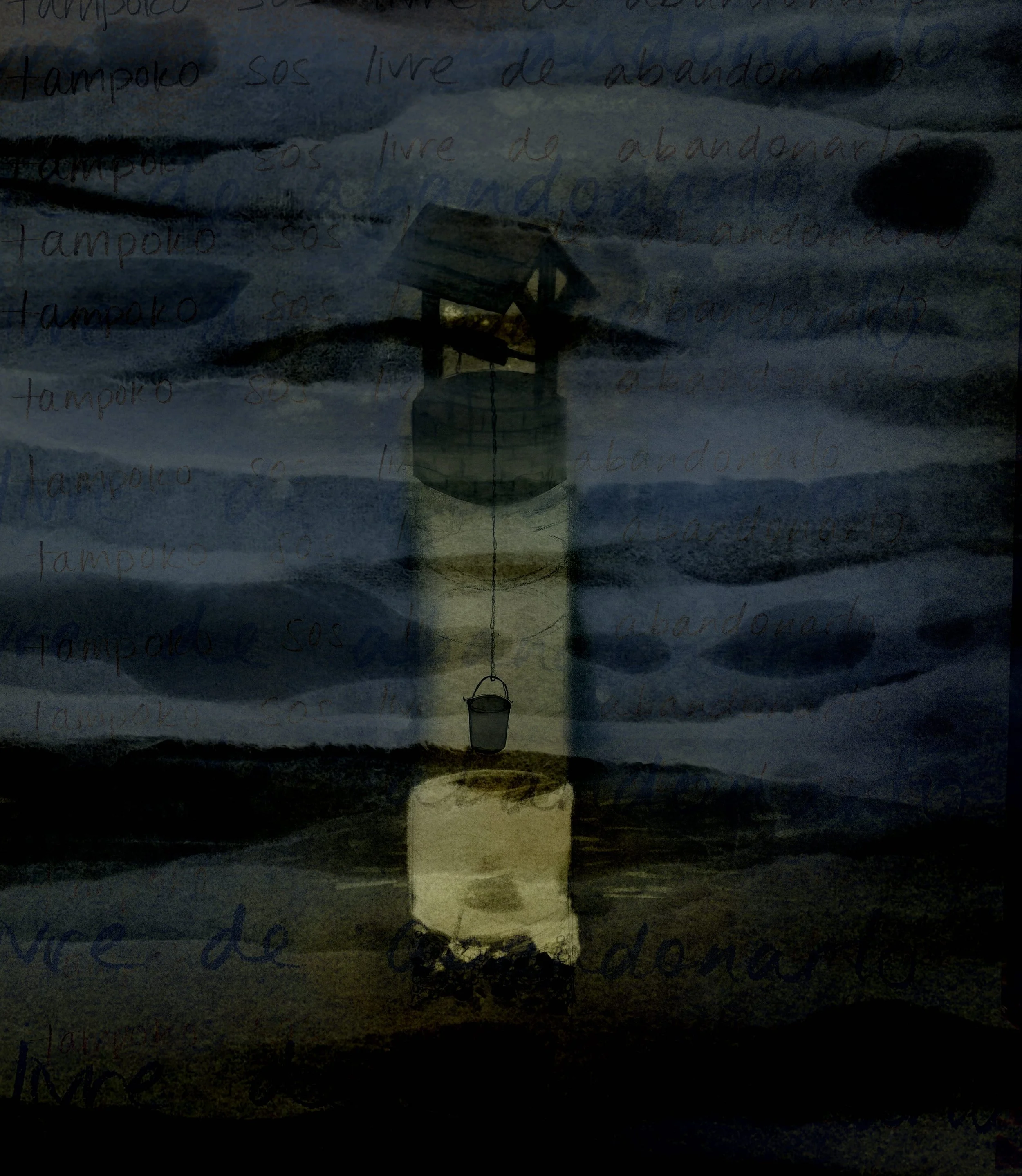 Untitled (Well), 2025. Digitally collaged drawings with pencil and olive oil.